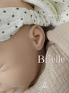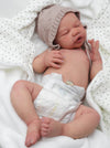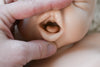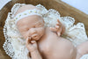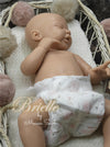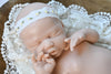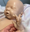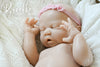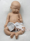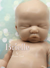 Brielle is 20 inches from head to heel with straightened legs (19 inches with bent legs). She weighs 7lb 14oz, and is poured in one piece with platinum silicone by Elena Westbrook. She is available in EcoFlex 20 or Super Soft Blend. Her mouth is open, has a tongue and visible upper gums, and can take a standard newborn pacifier. She is also available as “Bobby”, the boy version of this kit.
